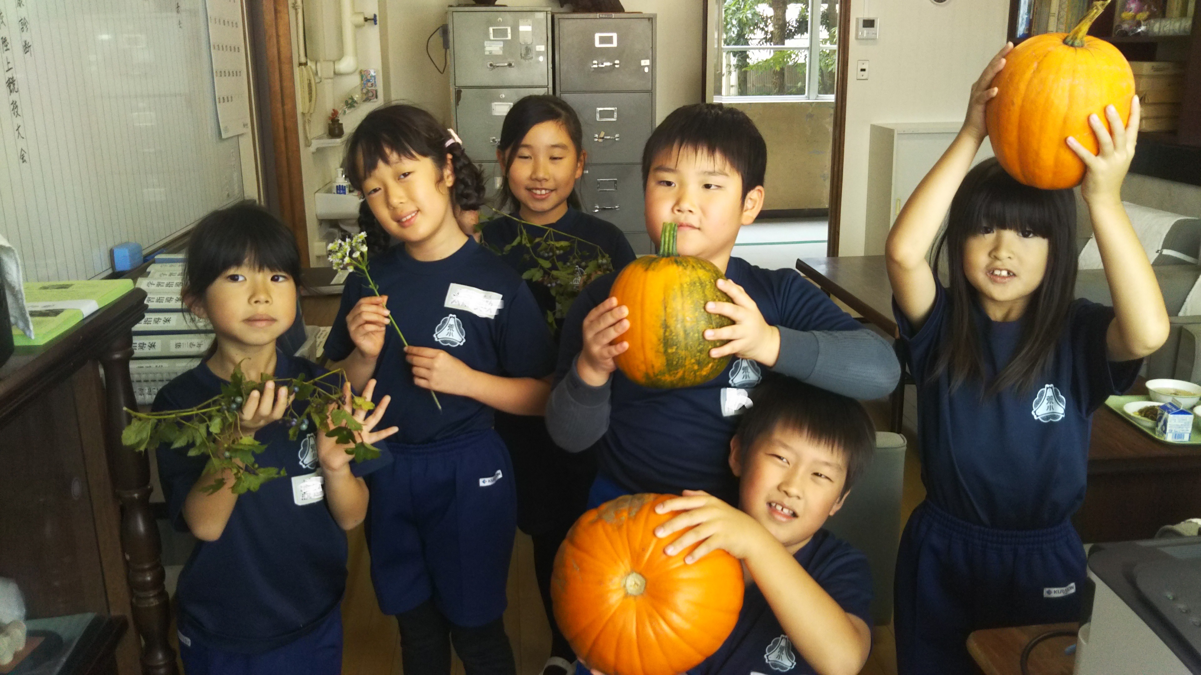 学校にもどった2年生は、早速校長室までかぼちゃや草花を見せにきました。”荒井に学ぶ” ”荒井で学ぶ”豊かな体験が子供たちを動かしたのだな、とうれしくなりました。