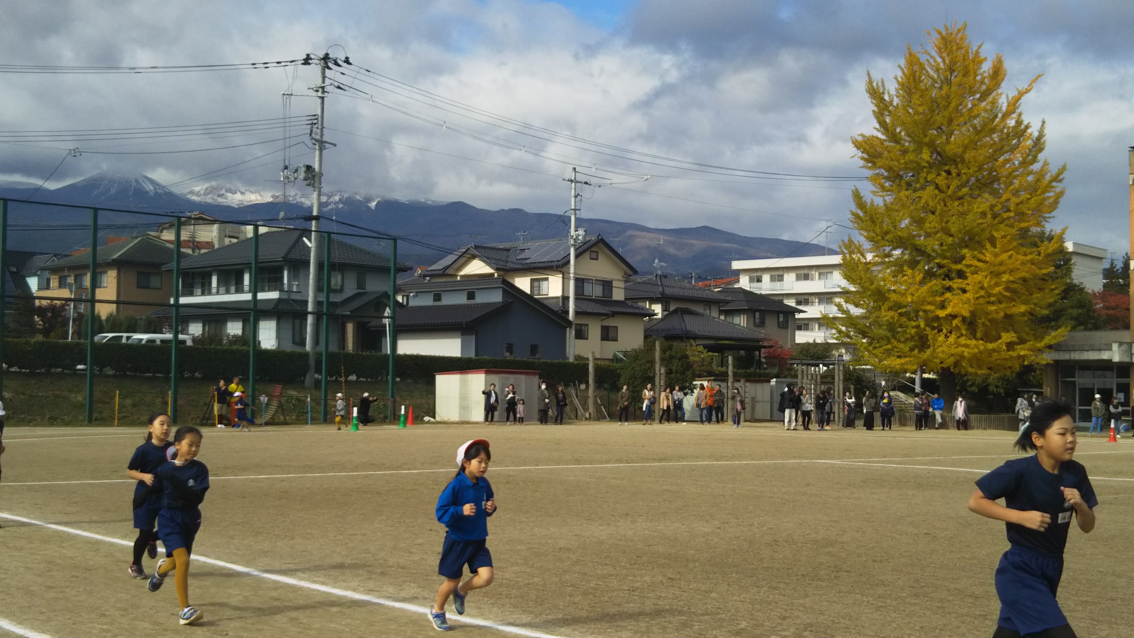 白く雪を頂く吾妻山を背に、どの学年も一生懸命取り組みました。自己記録を更新した子もたくさんいました。