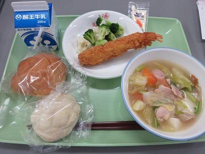 さて、今日の給食は1,2年生だけでした。3年生はお弁当です。