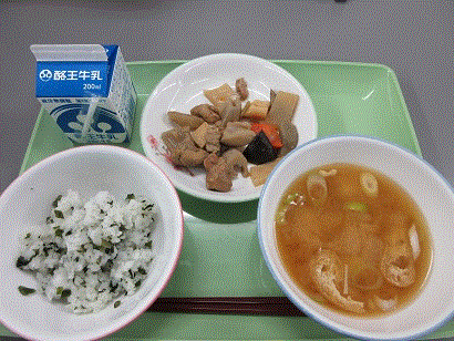 今日は大根が入った「根菜汁」です。自然の恵みに感謝して食べましょう。