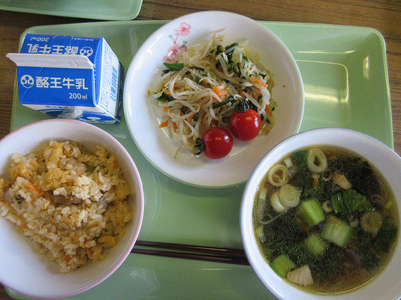 さて、今日はキムチチャーハンでした。たいへん好評だったようです。辛いおかげで、牛乳の残りもなかったようです。