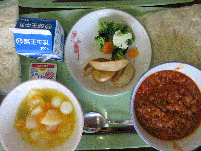 今日の給食はミートソースもおいしかったのですが、なによりもフルーツポンチが一番です。