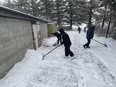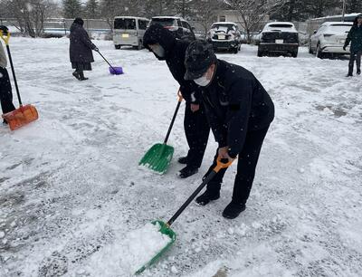 2023年2月2日 08時45分連日の積雪で、雪かきのボランティア活動に参加する生徒が