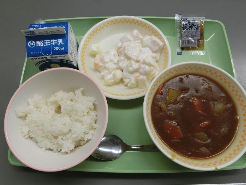 〈献立〉麦ごはん 牛乳 カレーライス ヨーグルトあえ