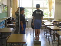 1年生、2年生では、時間を工夫して身体計測を行いました。