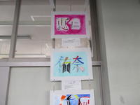 本日は、1学年前と美術室前の展示の進み具合を写真でお知らせします。