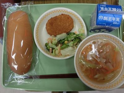 2020年11月10日 16時37分献立(パン)(牛乳)(かぼちゃコロッケ)(ブロッコリーサラダ)(コンソメスープ)