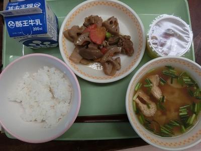 2020年11月13日 16時22分献立 (ごはん)(牛乳)(納豆)(炒り鶏)(里芋のみそ汁)