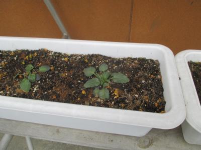 生徒会本部やJRC委員会のメンバー、鈴木技能主査が以前に植えたパンジーが、寒い中で育っています。