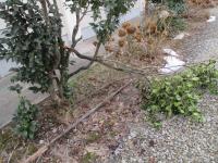 自転車小屋のそばの樹木も雪で枝が折れても、蕾がついています。