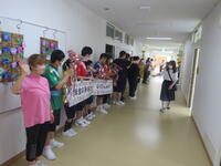 校長から「ふくしま支援学校ができてから、今年で何年経ったでしょうか?」との問いに「60年」と答えていました。本校が今年創立60年を迎えることをクイズ形式で子どもたちに伝えました。