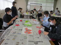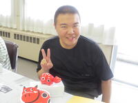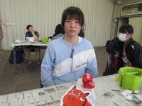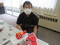 柳津町つきみが丘町民センターで赤べこ絵付け体験をしました。