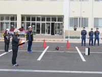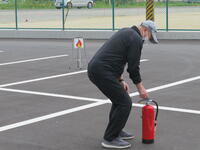 水消火器を使って、消火訓練も行いました。