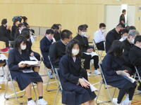 説明に対する意見や質問をしたり、質問に対して丁寧に答えたりして、生徒会活動への理解を深めました。