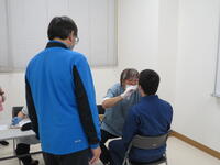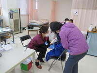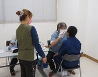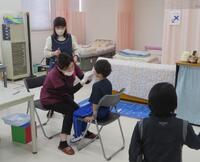一定の間隔をとって順番を待ち、落ち着いた態度で健診を受けていました。