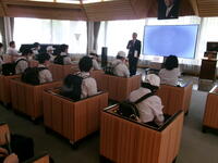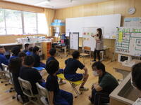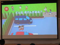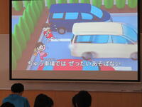 プロジェクターの映像を見ながら、交通ルールやマナーについて学びました。