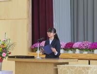 3年生の代表生徒が、大きな声で元気よく「歓迎の言葉」を述べました。