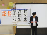 代表生徒から、「(中略)これから経験するすべてのことが、将来の夢や目標の実現につながると思います。新入生のみなさん、私たちと、ともに学び、良い思い出をたくさん作っていきましょう。みなさんが一日も早く、この学校に慣れることを在校生一同応援しています。」と歓迎のことばを述べました。
