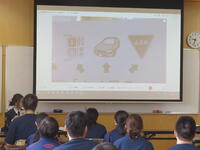 交通指導員から、プロジェクターを活用して、クイズ形式で楽しく学ぶことができました。