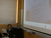 生徒会役員がプロジェクターを使って高等部の生活を紹介しました。