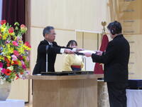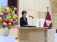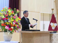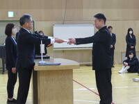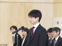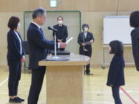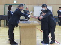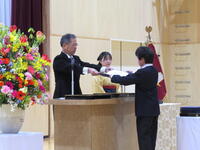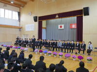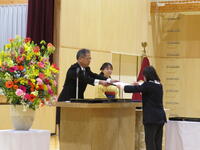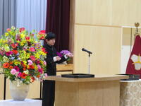 校長式辞では、「(中略)卒業生のみなさん。4月から新しい学校生活が始まります。それぞれの学部で学んだこと。進んであいさつすること。そして、相手を思いやる心や「ありがとう」の感謝の気持ちを忘れずに、目標をもってがんばってください。」との言葉がありました。