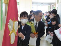 3月12日(火)、小・中学部「卒業証書授与式」のあとに、卒業生の見送りを行いました。