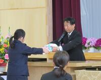 新入生代表児童生徒に永峯校長が教科書を手渡しました。