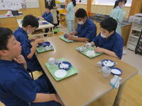 2校時には、ものづくり棟2階縫工室において、作業学習の授業を保護者の皆様に参観していただきました。