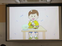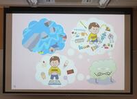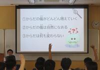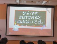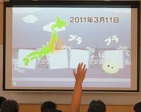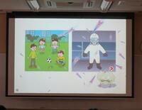 放射線リスクコミュニケーション相談員支援センターの職員の皆様に来校していただき、スライドによる紙芝居を通して説明していただきました。