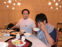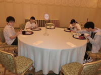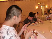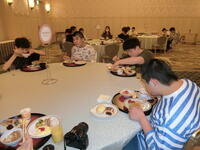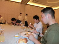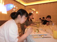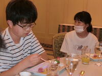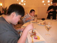 フルコースのディナーも2日目とあって、ナイフとフォークの使い方が上手です。