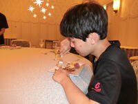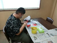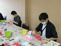 元祖食品サンプル屋で、ビデオを見ながら作り方を学習して、実際に食品サンプルを作りました。
