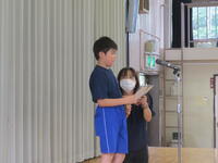 各学部代表児童生徒が「1学期の振り返りと夏休みの抱負」を相手に伝わる声量で発表しました。