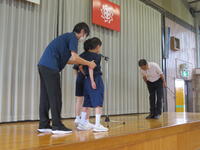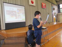 校長より、「全校生が体育館に集まって集会するのは3年ぶりです。児童生徒の発表を聞いて、1学期の学校生活を振り返るとまとめをしいかり行ってほしいと思います。」との話がありました。
