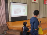小学部5,6年生と中学部1,2年生の宿泊学習の発表がありました。中学部は、プロジェクターで写真を紹介しながら発表しました。
