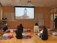 福島市消防本部職員から、心肺蘇生法と自動体外式除細動器(AED)の仕方について、講話とDVDの映像を観て学びました。