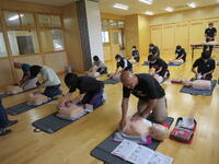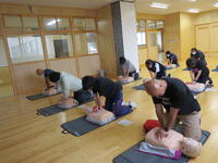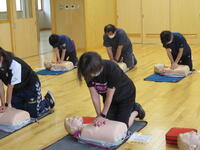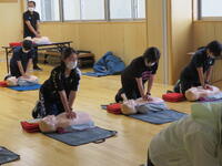 5回の救命救急講習会で、本校教職員62人が実施しました。