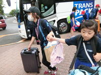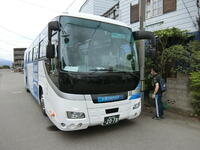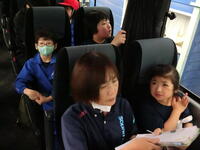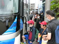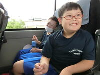 大型バスに乗って、あづま総合運動公園まで移動しました。みんなバスが大好きです。