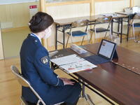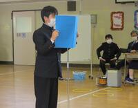 高等部は、交通指導員の方の講話を聞いて、〇✕形式のクイズに答えながら、交通安全のルールやマナーについて学びました。