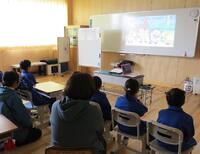 小学部は、4つの教室に分かれて、①紙芝居「コロタンのおたんじょうび(とびだしはあぶない)、②パネルシアター「あか あお きいろ」、③DVD1「はなかっぱの交通安全」(ケーキを求めて右左右)、④DVD2「とぼだしはあぶないぞ!」(むしむし村の交通安全)を見て、交通安全のルールなどを学びました。