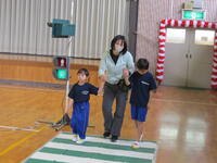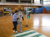 また、体育館に設置した模擬横断歩道でも実技を行いました。