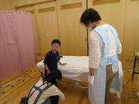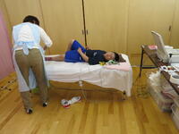 簡易ベッドに横になって、落ち着いた態度で検査を受けていました。