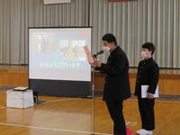 2年生の代表生徒が、中学部の1日と1年間の紹介をしました。