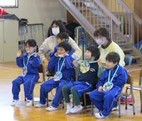1年生は、手作りのメダルをもらいました。とってもうれしそうです。
