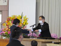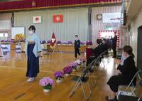 校長より、「小学部10名、中学部9名のみなさん、ご入学おめでとうございます。小学部のみなさん、2年生から6年生までのお兄さんやお姉さん、先生方がみなさんの入学をとても楽しみに待っていました。今日からみなさんの学校生活が始まります。毎日休まず登校し、みんなと仲良く勉強や運動に取り組んでください。また、先生の言うことをよく聞いて、ひとつひとつできることを増やしていきましょう。・・・(中略)・・・」と式辞がありました。