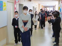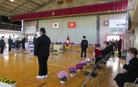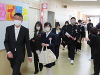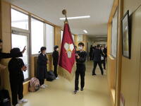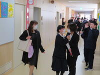 新校舎内で、在校生全員が拍手で卒業生を見送りました。