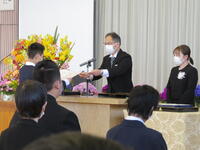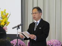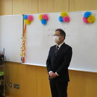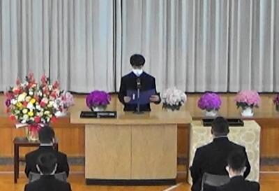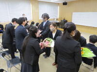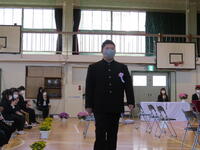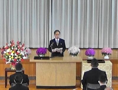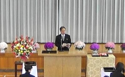 校長より、「(中略)卒業生の皆さん、4月から新しい学校生活が始まります。それぞれの学部で学んだこと、進んであいさつすること、そして、相手を思いやる心を忘れずに、目標をもってがんばってください。」との話がありました。