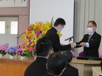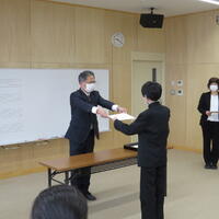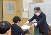 中学部は、音楽室で、各学年の代表生徒が校長から修了証書を受け取りました。