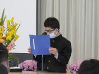 代表生徒が、離任される先生方への感謝の言葉を述べました。