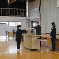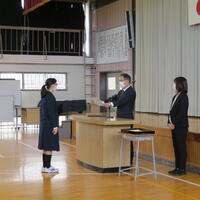 高等部は、体育館で、各学年の代表生徒が校長から修了証書を受け取りました。