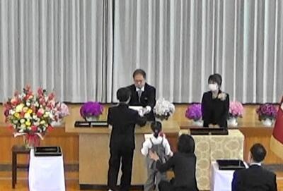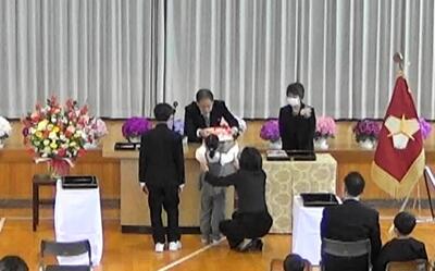 小学部は、1階と2階の多目的室で、各学年の代表児童が校長から修了証書を受け取りました。
